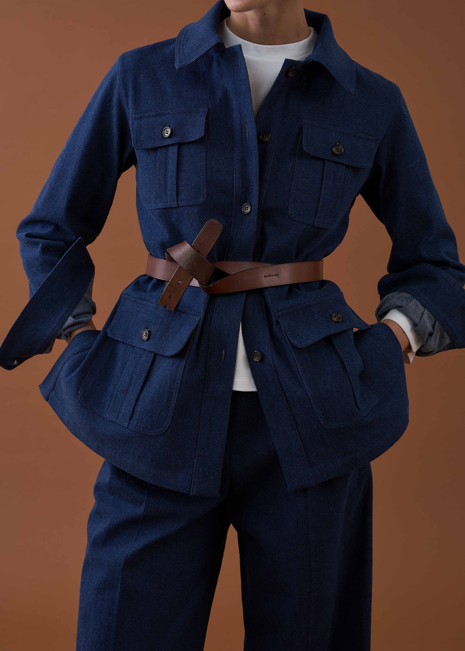 Passender doppelreihiger Blazer und Safari Jacket ebenfalls erhältlich.