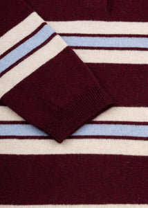 Kuscheliger, gestreifter Pullover 'Robin' von Anna v Berg aus einem feinen Merino-Kaschmir-Mix,  Polokragen mit kurzer Knopfleiste, lange Ärmel, gerippte Abschlüsse, gerader Saum.