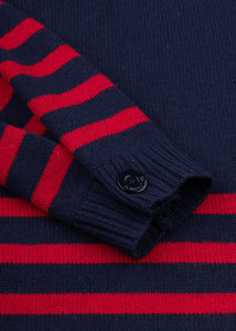 Lockerer, gestreifter Pullover von Semi-Couture aus einer edlen Schurwoll-Kaschmir Mischung, Rollkragen, lange Ärmel mit Knopfdetail, breite gerippte Abschlüsse, gerader Saum.