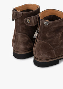 Handgefertigte Stiefelette 'Camil 70009' von Alberto Fasciani aus hochwertigem Veloursleder, schließt mit Reißverschluss bei Ferse und mit Druckknopf-Lasche.