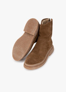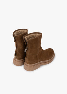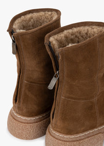 Handgemachte Stiefelletten von Alberto Fasciani mit Lammfellfutter, Reißverschluss hinten und helle Gummisohle.