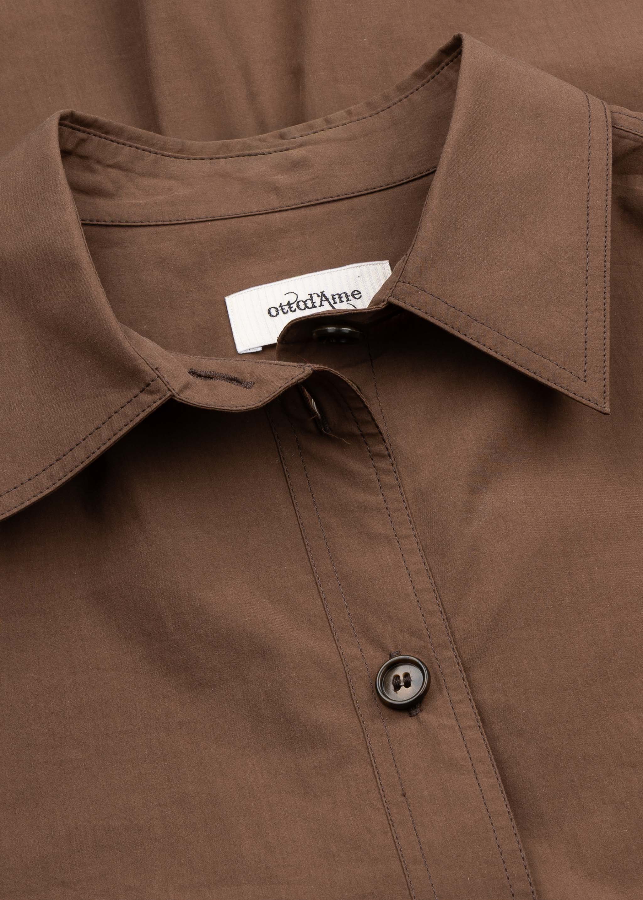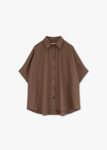 Kurzärmelige Bluse von Otto d'ame aus weicher Baumwolle, klassischer Kragen, durchgehende Knopfleiste, Kimonoärmel mit Knopfmanschette, Rückenpasse mit Quetschfalte, eine Brusttasche, abgerundeter Saum.