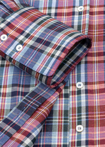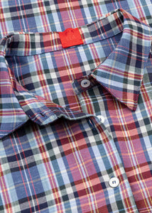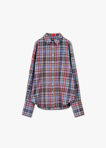 Kariertes 'Woman Shirt' von PiaLea, klassischer Kragen, lange Ärmel mit breiter Knopfmanschette, leicht abgerundeter Saum.