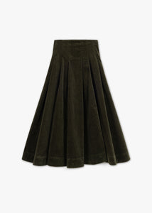 Midi-Rock von Polo Ralph Lauren aus weichem Kord, seitlicher Reißverschluss, Kellerfalten, ungefüttert.