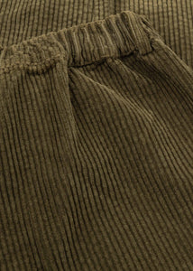 Weite Hose 'Bum' von Labo Art aus Breitkord, Gürtelschlaufen, Knopf- und Reißverschluss, elastischer Bund hinten, seitliche Eingriffstaschen.