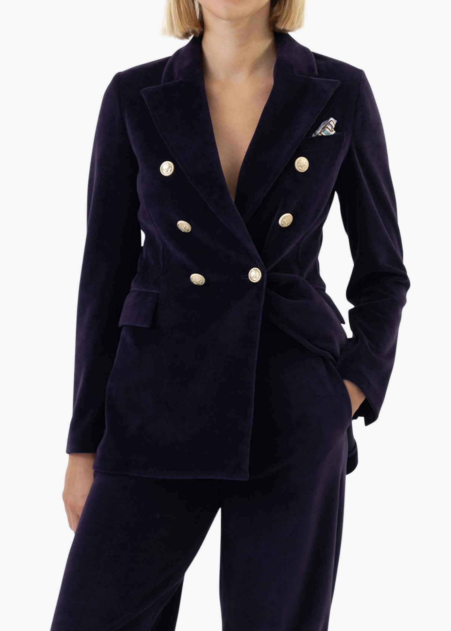 Passender doppelreihiger Blazer ebenfalls erhältlich.