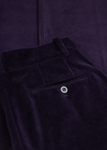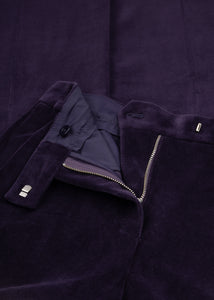 Hose 'Masculine' von Circolo 1901 aus weichem Samt, Gürtelschlaufen, Knopfverschluss mit Riegel und Reißverschluss, Bügelfalten, Abnäher am hintern Bund, seitliche Eingriffstaschen, eine Gesäßtasche.