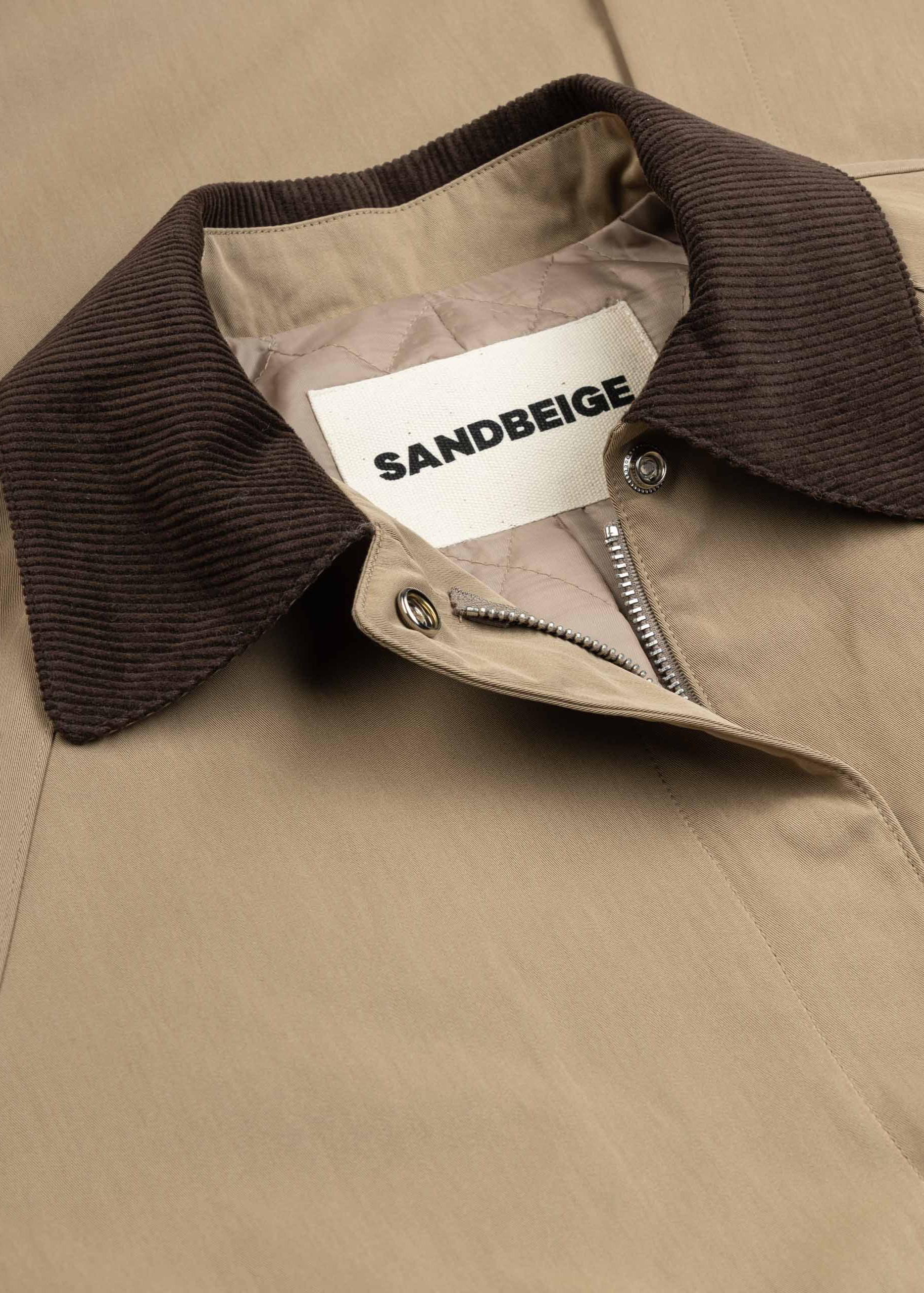 Elegante Hose 'Birkin' von Sandbeige, schließt mit Haken- Knopf- und Reißverschluss, seitliche Eingrifftaschen, Paspelgesäßtaschen, Bügelfalten, seidiger Glanz, verkürztes Bein mit Seitenschlitz.