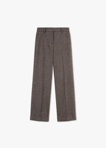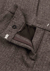 Cropped Hose 'Via Amorari' von via Masini 80 aus einer weichen Wollmischung mit Fischgrätmuster, Gürtelschlaufen, Haken- und Reißverschluss, Bügelfalten, seitliche Eingriffstaschen, zwei Paspelgesäßtaschen, Saum mit Umschlag