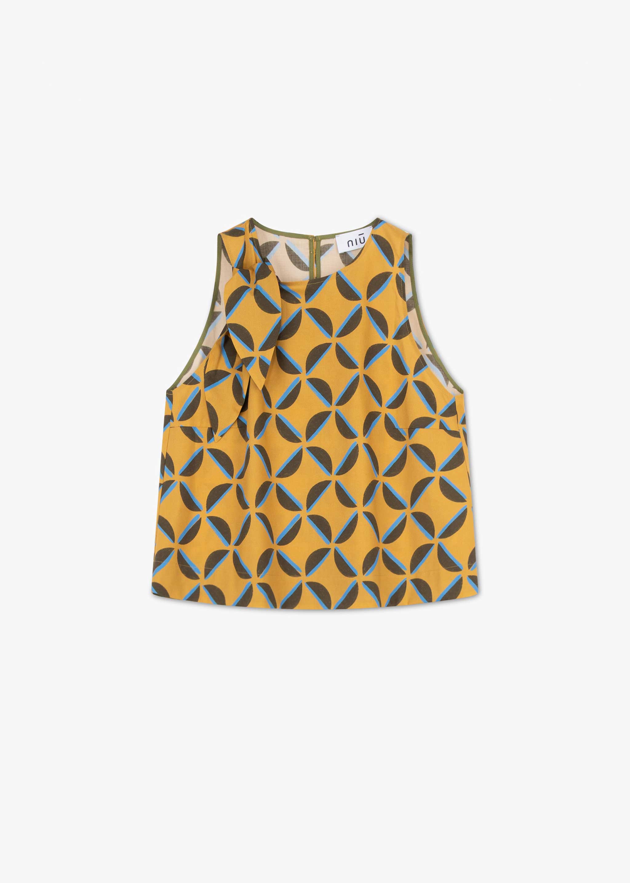 Knöchellange Hose von Niū aus einem weichen Baumwollmix, elastischer Bund hinten, seitliche Eingriffstaschen.