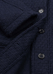 Kurze Jacke 'Fancy Knit' des französischen Labels Vétra in Strickoptik, klassischer Kragen, durchgehende Knopfleiste, drei aufgesetzte Taschen, eine Innentasche, gerader Saum, ungefütterte Verarbeitung.